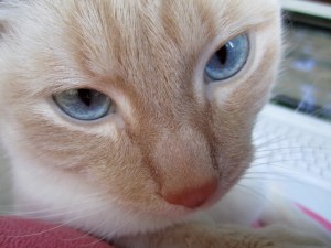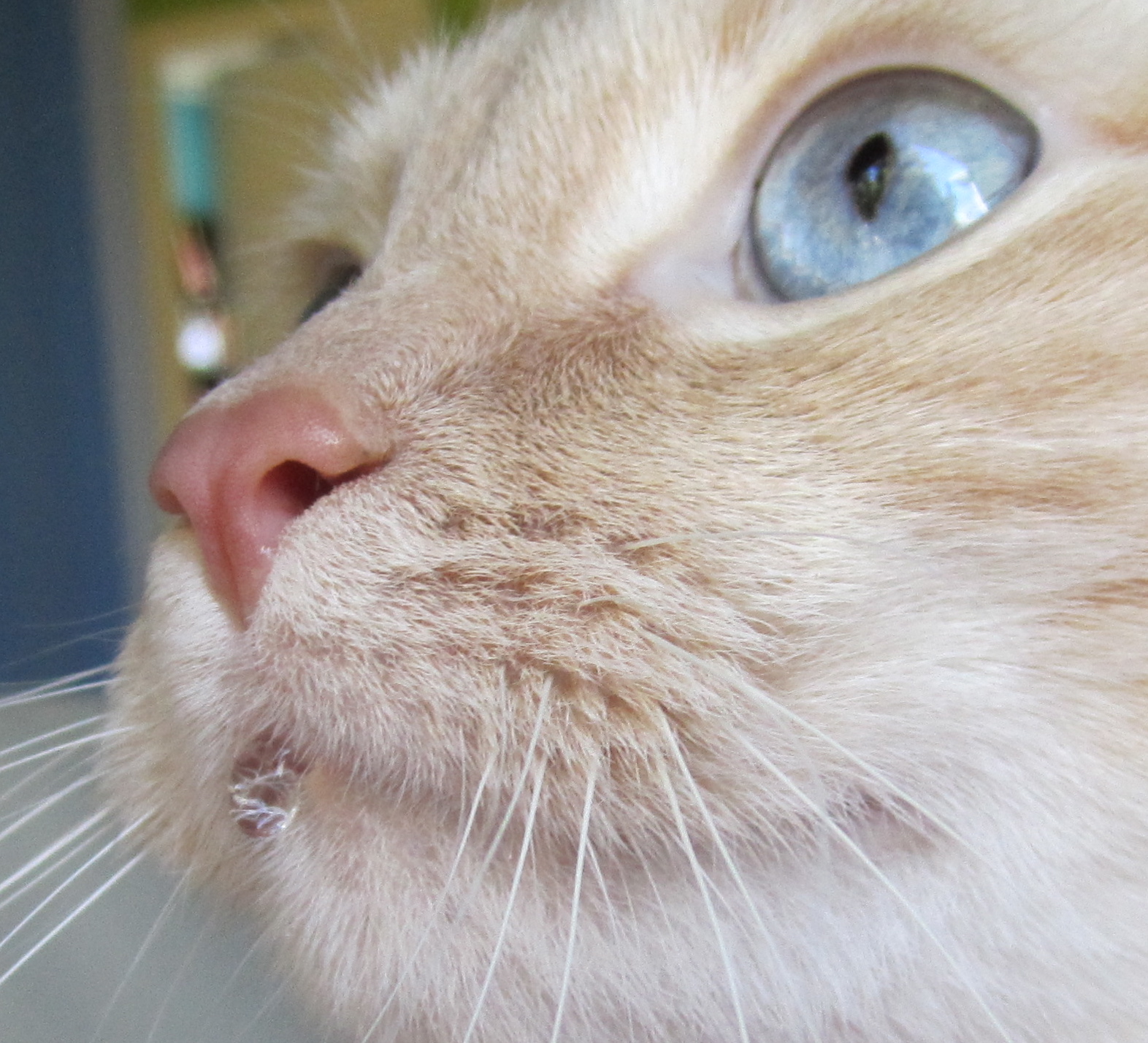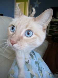 Do you remember that movie Beethoven from a few years back with the Saint Bernard who would fling loogies whenever he shook his beastly head? Yeah. Picture that, but with longer whiskers. Leroy gets himself situated, and then the floodgates release. He purrs. He kneads with his little pink toes. He drools all over the sucker person who decided to give him some lap time. The white hairs that seem to swarm around him like so many fruit flies then stick to the drool spots. It’s awesome. Sigh.