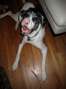 Sherman is a big believer in civic responsibility. He is licensed. He is vaccinated. He also surrendered his testicles on a fateful date this past December to help control the unwanted pet population. Homeboy is so concerned about the state of his nation and his neighbourhood that he poops at home, and never on his walks. Speaking of walks, he always walks in control, on his leash, and is friendly to everyone he meets, man or beast (as long as the beast isn’t a bird).