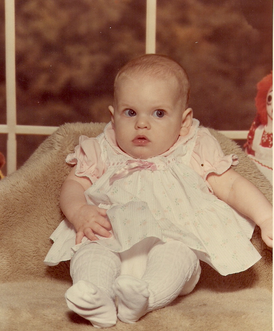 I seemed a bit alarmed in this photo and I can’t decide if my Daddy Warbucks hairdo or that creepy Raggedy Ann doll is to blame. It could be a joint effort, really.