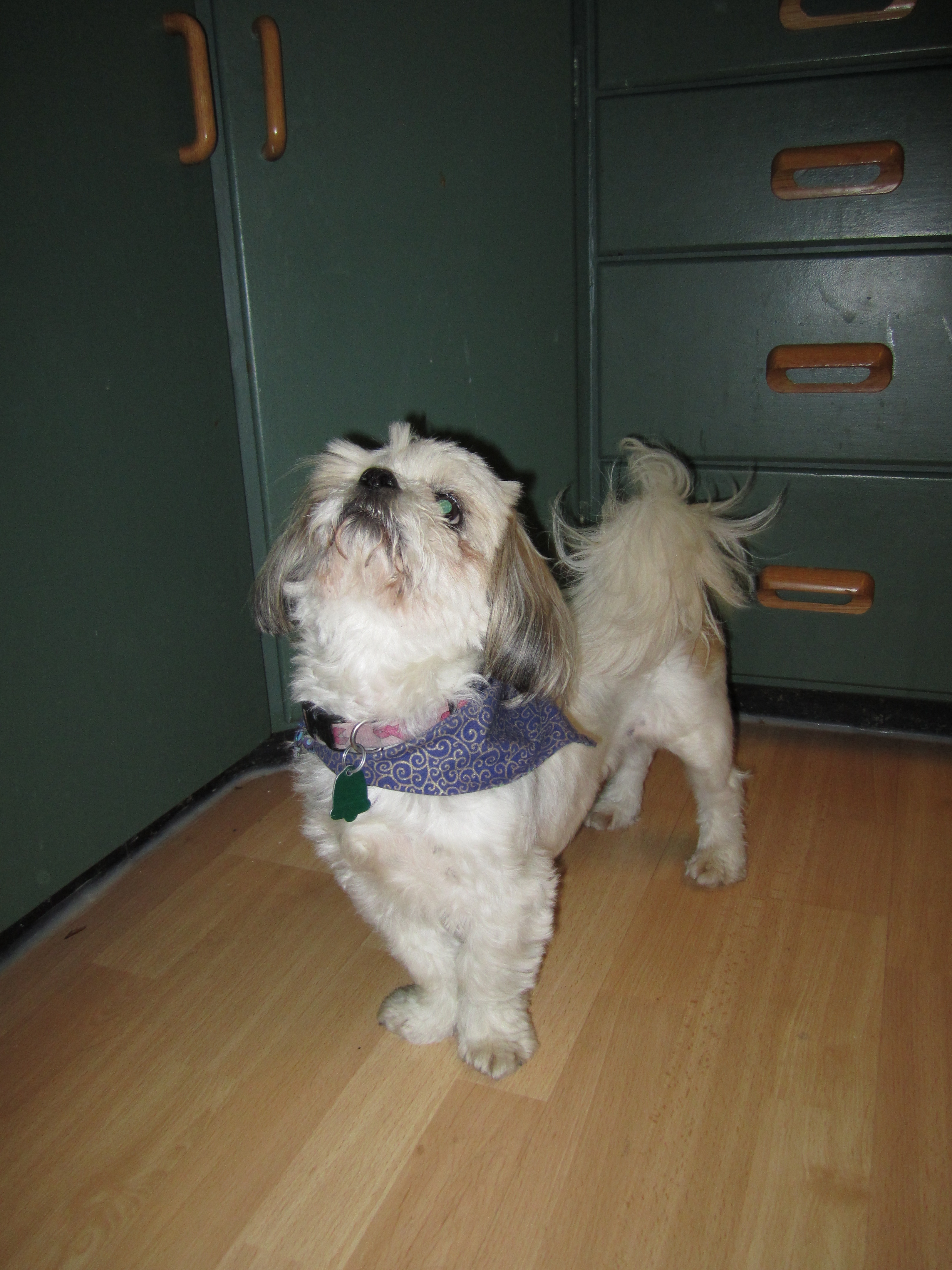 Gracey is a shih tzu mix who came to stay with my friend shortly after surgery to remove her right eye. The dog is down an eye, not my friend. The back story is that the poor little dog’s early life was spent popping out babies so her owner could make some money, until wee Gracey suffered an injury that irreparably damaged her eye. At that point, the vet said Gracey’s eye could not be saved but that it could be safely removed so Gracey could make a full recovery and live a normal life. Unfortunately, the original owner did not want an imperfect dog, which is ridiculous to me. Seriously, with all the Pirates of The Caribbean Hype, a curly little one-eyed pooch would be cool: yarrrr! Gracey’s first owner decided to euthanize her rather than pay for a brief procedure, which makes me want to throw up in that woman’s purse and/or sneakers and/or deep freeze, where/whoever she is.