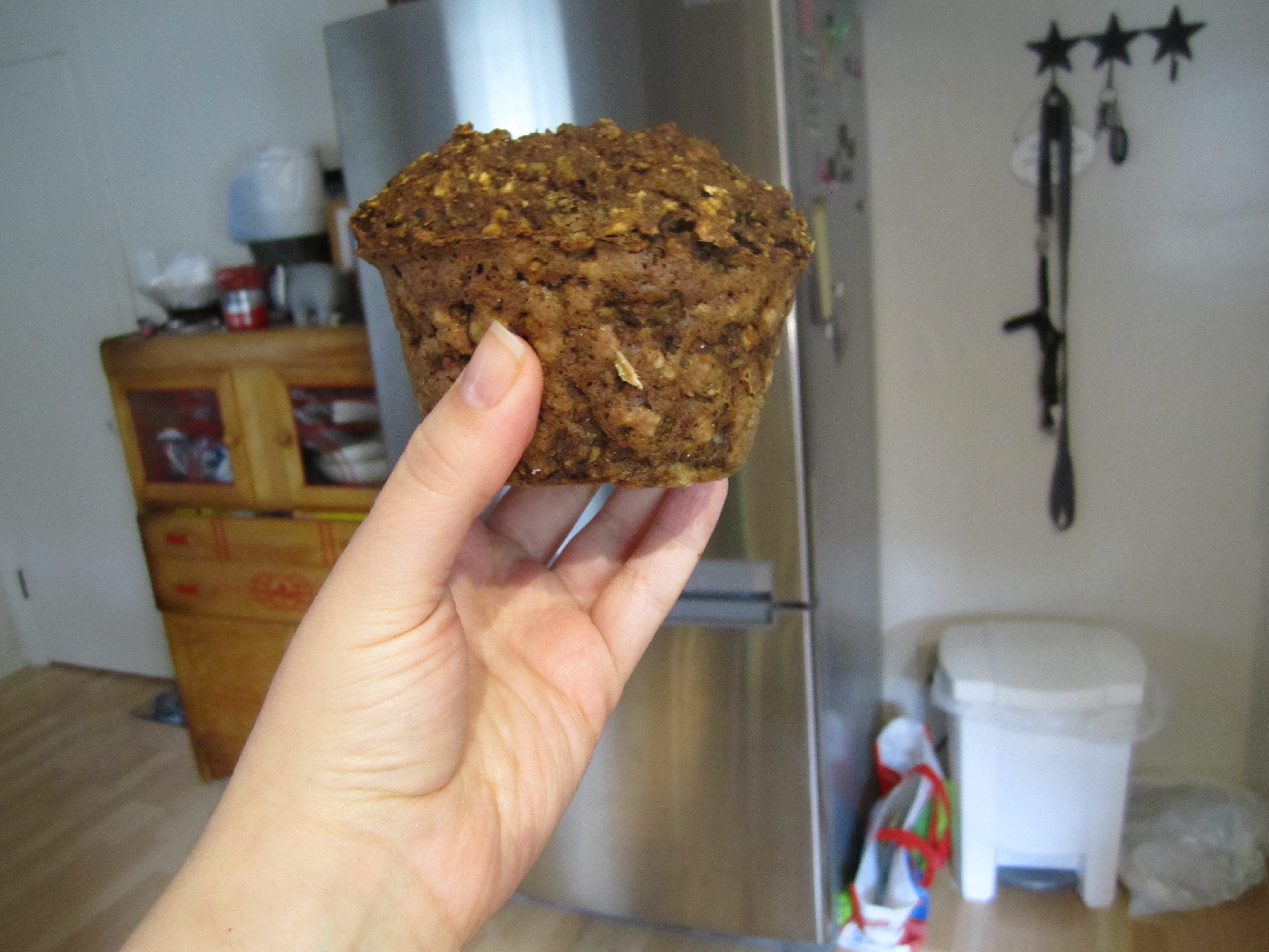 After the pupcake was completely cool, it had firmed up even more and I could gently remove it from the muffin tin. The outside was a bit crunchy, which I think was necessary to hold the thing together, but the insides seemed nice and tender.
