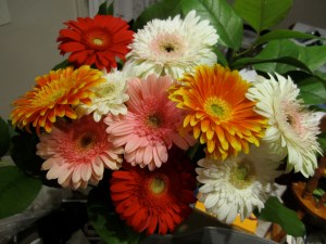 He’s not the kind of guy who does nice things for applause, or only to put on a show. His is a subtle kind of romance, without any big productions, and it’s always sincere. I was busy folding laundry in my room when he got here, and he simply left my gerberas on the counter for me to find when I ventured back through the kitchen. There was no special reason, which is the way The Electrician prefers to give gifts and special somethings. When I asked him what made him choose the daisies, since he’s usually a mixed-bouquet kind of fella, he said that the gerberas reminded him of sunflowers because they were so huge; since I can’t have sunflowers in the house due to a wicked allergy to them, he thought the gerbs were the next best thing. Sunflowers are my favorite, and I love him for finding me something as close as possible for no specific reason besides love. How sweet is this man?