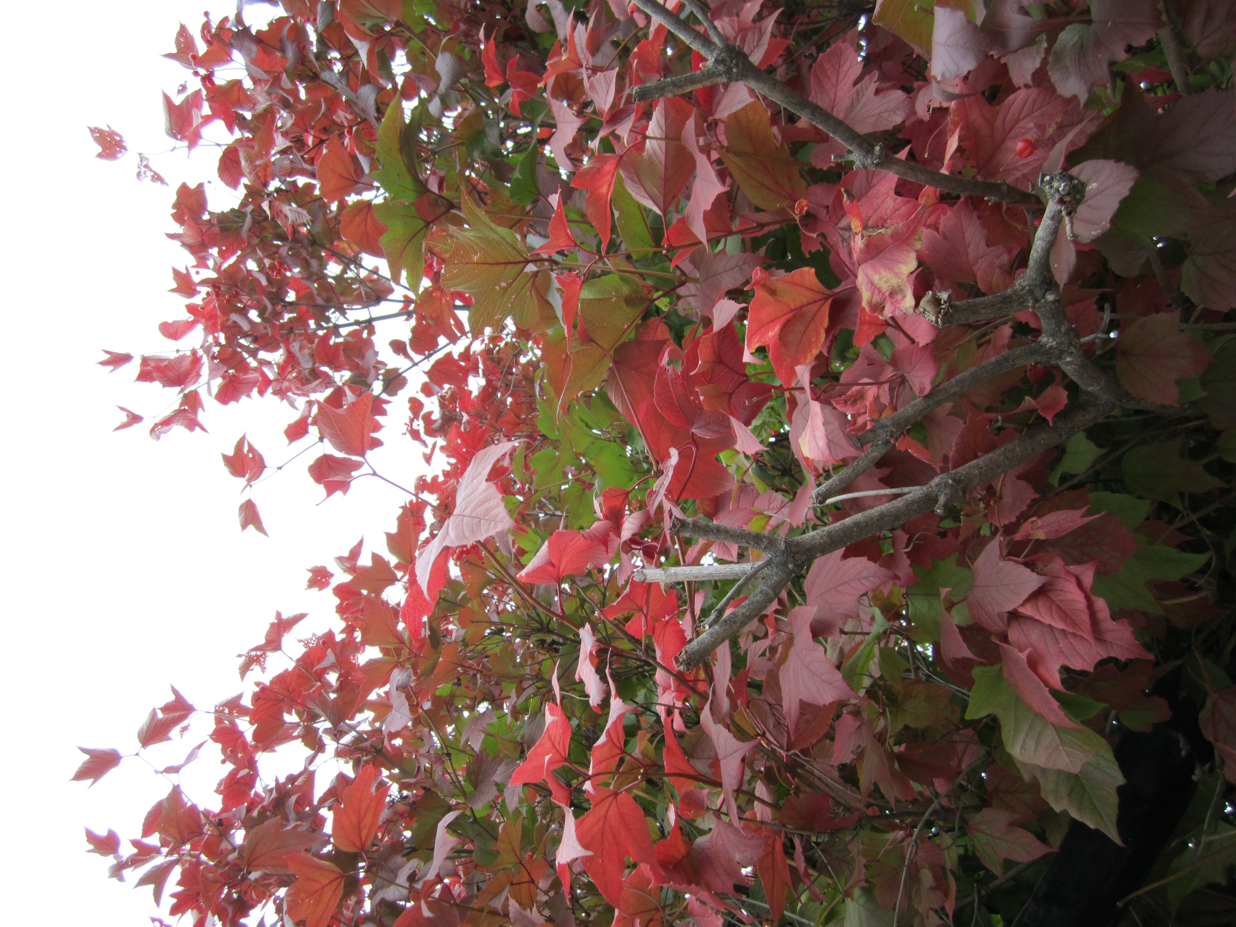 Right now, the tree is at its prettiest, because the leaves are only partially changed to crimson. I was hoping to snap some photos on a sunny day so you could see my tree really glowing, but it’s Alberta and I don’t want to miss the leaves waiting on sunshine knowing what happened last fall.