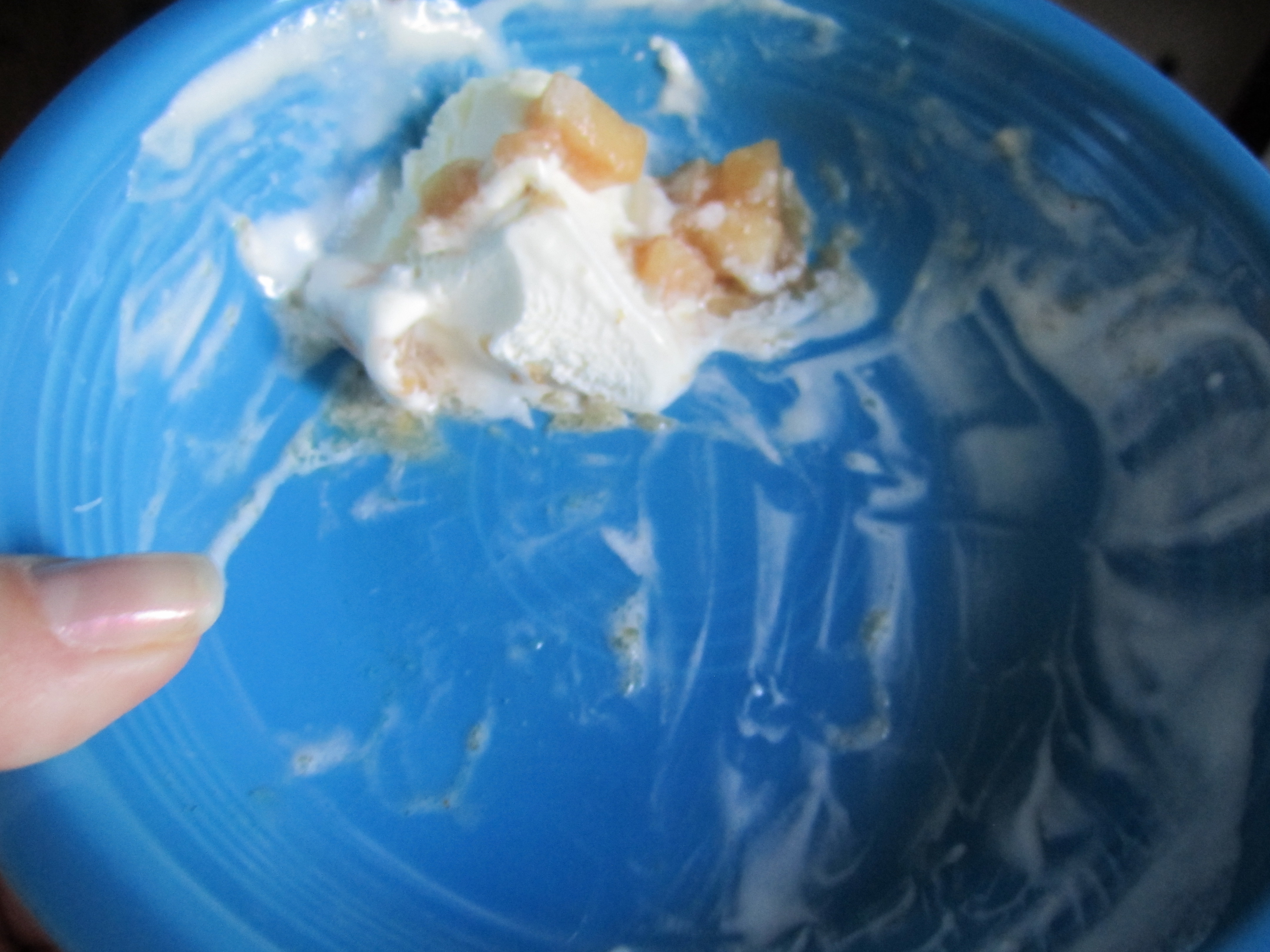 Clearly, almost apple sauce on The Electrician’s ice cream was a very dangerous proposition. I had three small bites –okay, four bites– off his spoon. He didn’t let me hold the spoon myself, probably because the look in my eye warned him to keep control of his shovel, but that was enough for me. I quit before I lost control of myself entirely. It was a wise choice.
