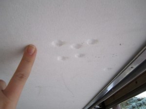 He looked at the door, I suspect anticipating a couple of mild scratches or something, and he saw this: