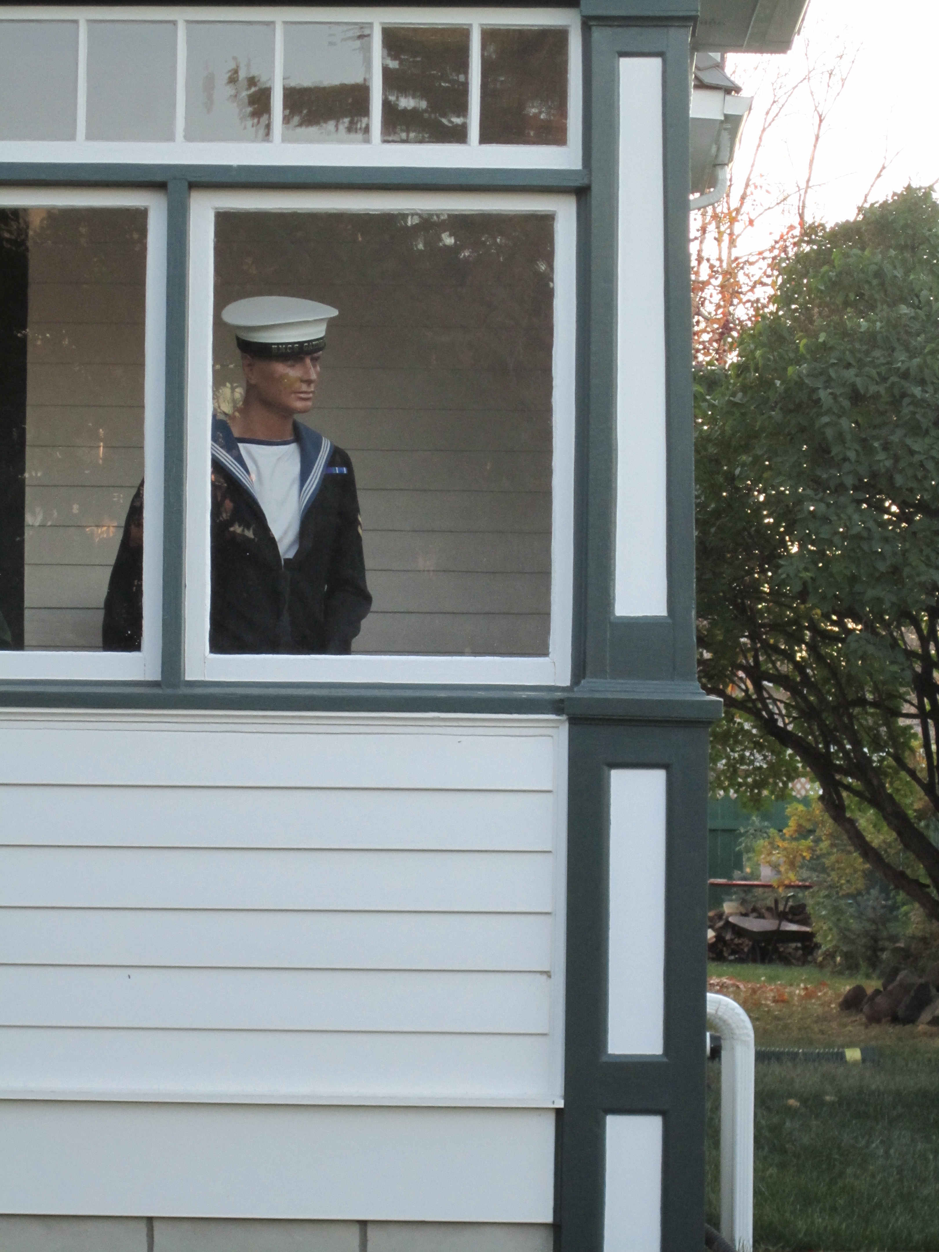 1. He’s been there every day of the 15 months I’ve lived in the dollhouse. He has different uniforms, though, all of them military. I’m tempted to knock on the door and ask, but I’m a little afraid of what kind of strange folks live there.