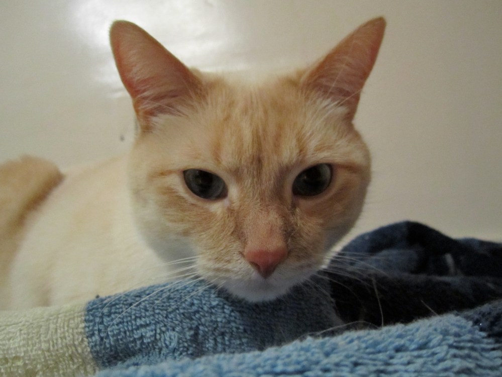 Leroy certainly has the right idea. He’s carved out a spot for himself near every furnace grate in the house, and the odds of finding himself in one of his at home vacation destinations are pretty incredible most chilly days. His favourite place to lounge and purr at the moment is in the kitchen, where he’s dragged Sherman’s towel right against the vent so the hot hair ruffles his whiskers. Sherman is trained to eat his treats and chew his chewables on his bed, and the towel in the kitchen is one I keep around so I don’t have to move the big one in from the living room, and Leroy has decided that the pup should share. He also realizes the towel matches his blue, blue eyes. It’s all about setting himself up to look good, really.