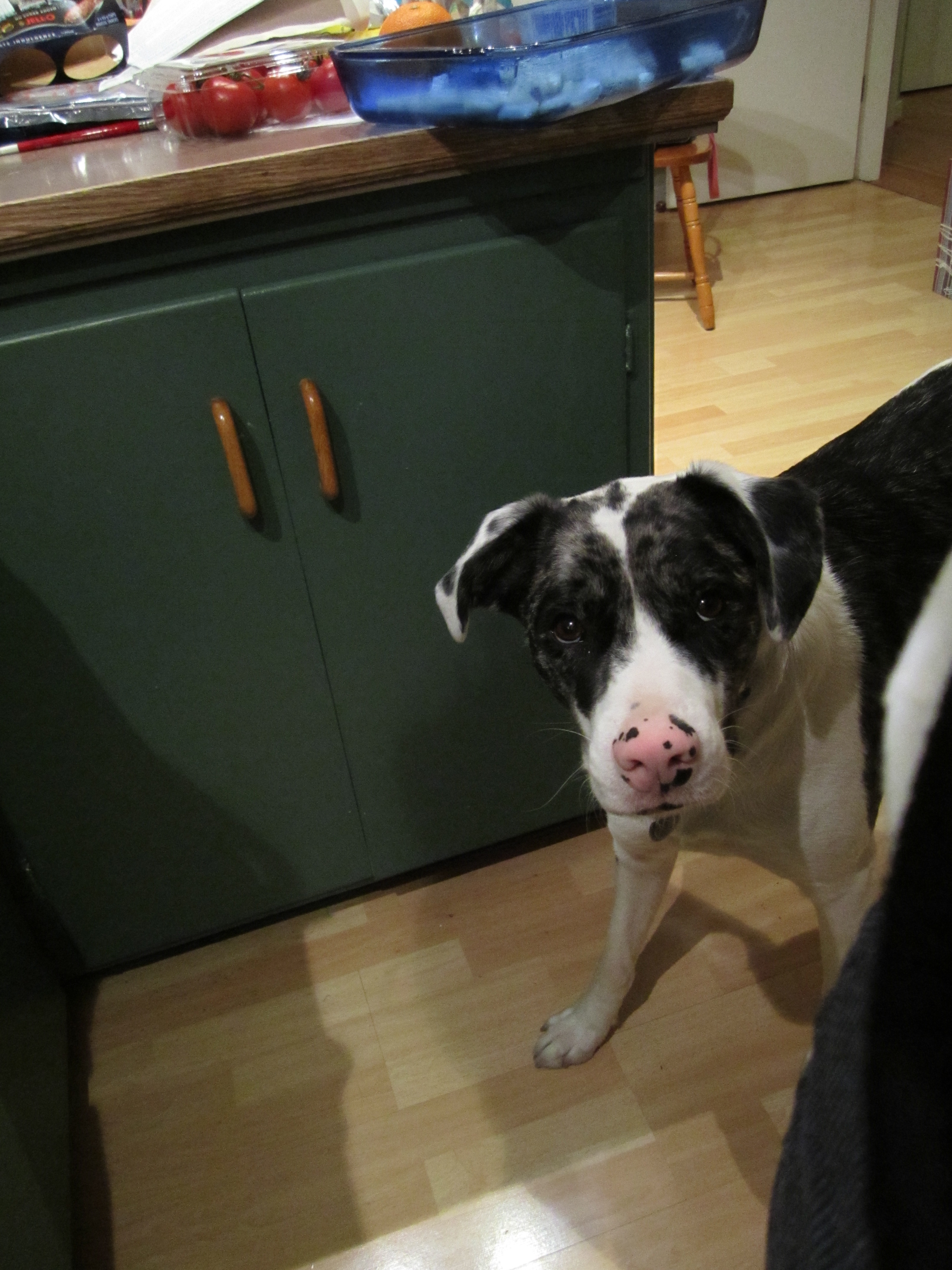 1. Excellent approach to ridding the kitchen of canine hopefuls! I may have to see about that. I was also thinking of an air horn or something I could startle him with so he’ll learn his “own” lessons rather than me having to look at me as the bad guy.