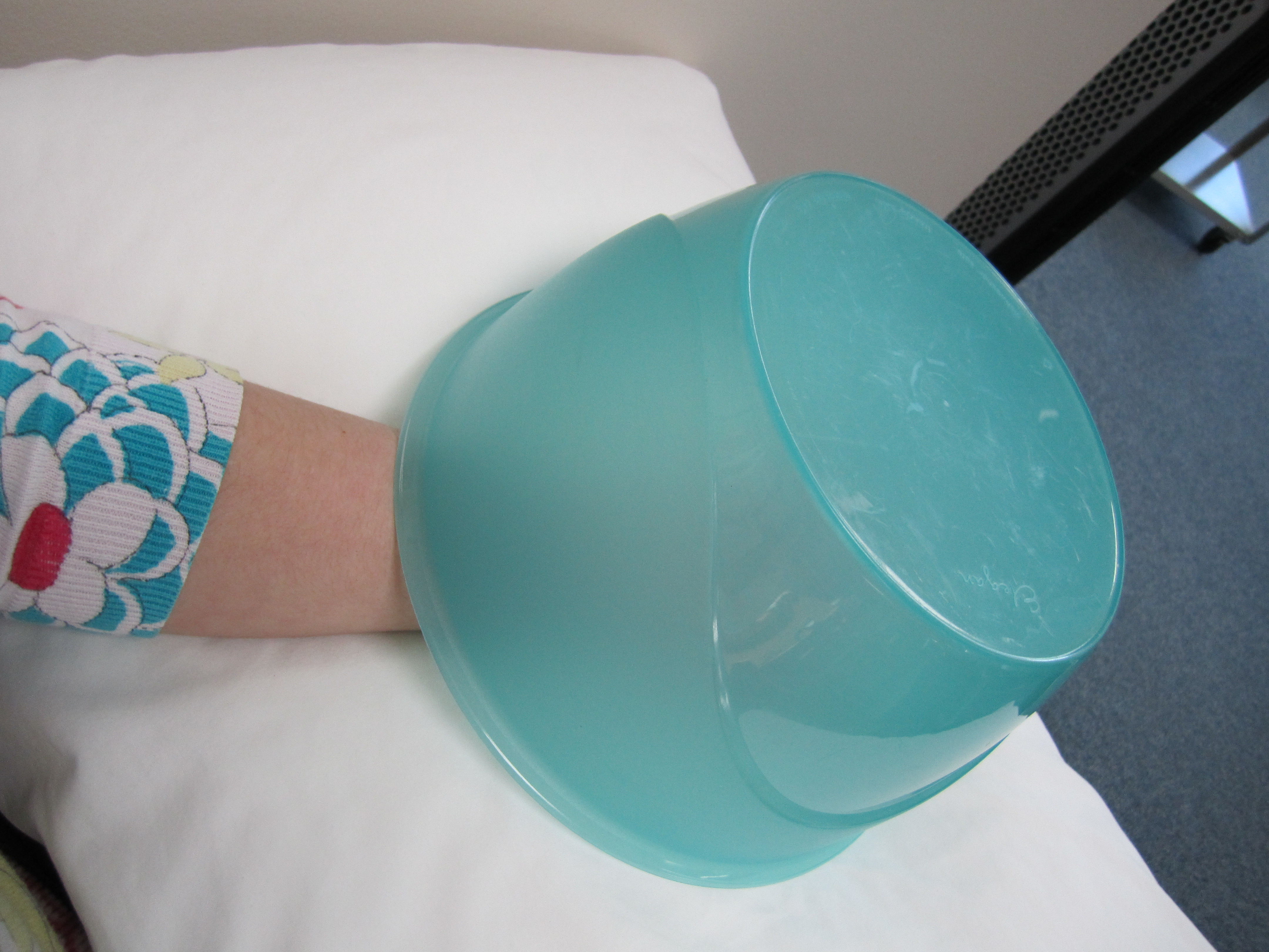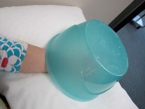 Strange things started happening under the bowl this afternoon. My hand tingled. All my digits flushed with heat that quickly spread to my whole hand and partly up my forearm. (I desperately wanted to use the word “phlanges” in that last sentences, but I am a model of restraint.) Truly, I felt like I had trapped my hand in a not-quite-Tupperware sauna, and the sensation was remarkably soothing. My physiotherapist mentioned two things about the intense heat and tingling: first, the sensations meant my “Chi” was flowing like mad, and also, my circulation was working overtime to address the injury.