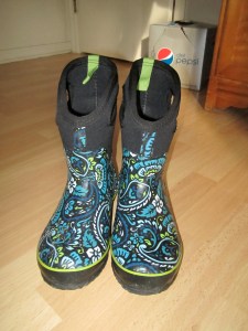 These little babies are called Bogs, and they’re totally waterproof and rated to minus 40 Celcius, not to mention paisley. Only two of those things are really critical in a winter boot, but both were selling points for me.