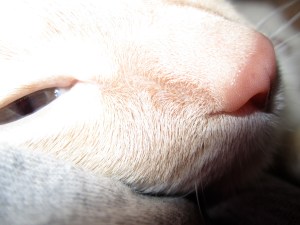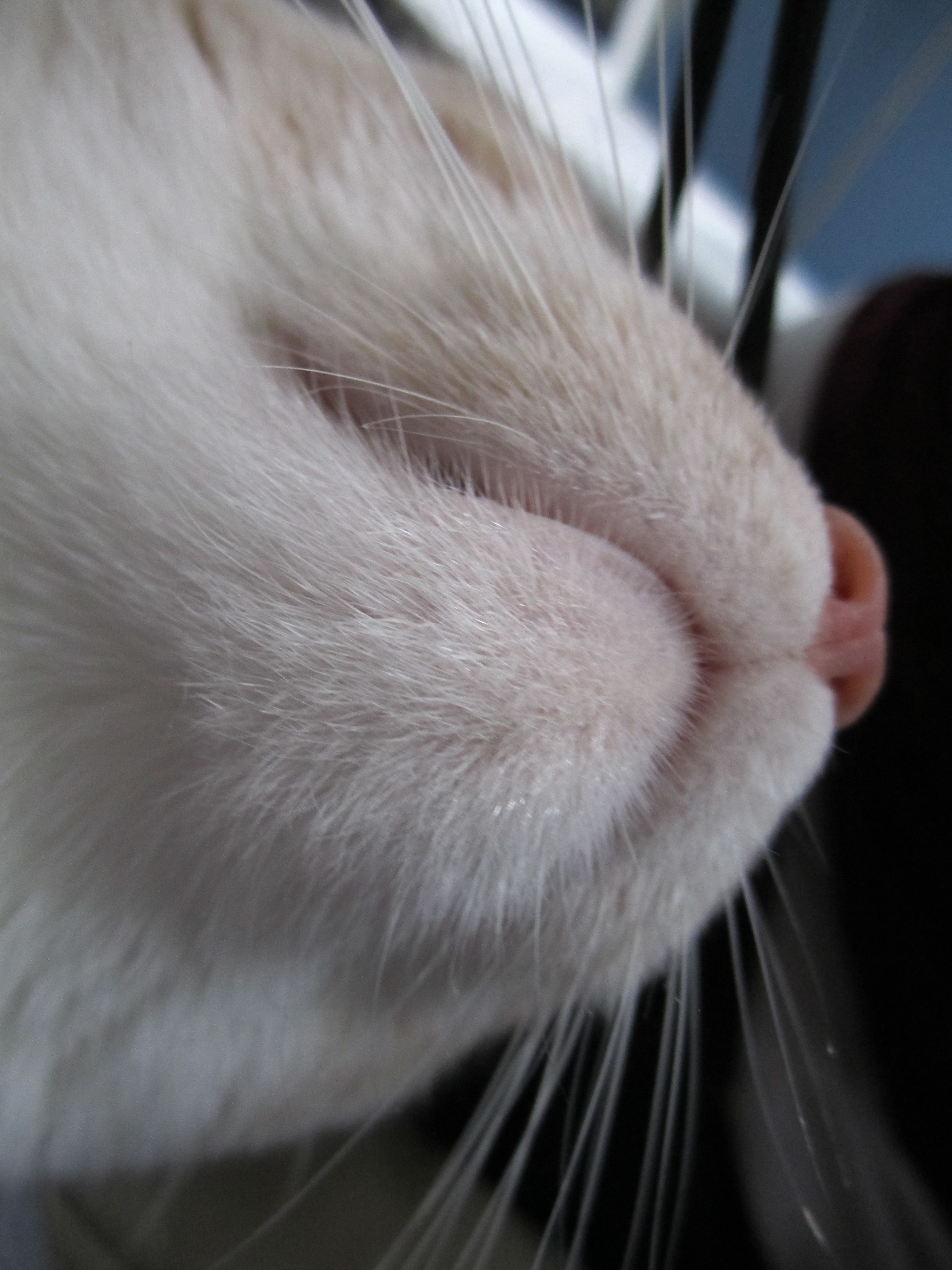 I decided to go with it rather than fight him. Either way, whether I gave in or managed to shoo him away (highly, highly unlikely) I was going to end up covered in hair and cat slobber. Ever the blogger looking for the next story, I got right up in Leroy’s business with my little point and shoot camera. Here, just for you, are a series of photos that demonstrate what life with Leroy is really like. He’s Mr. Up Close and Personal, and today you get to enjoy him too, minus the cat breath.