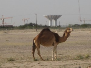 Camel races were playing on television when we were stuck overnight in Abu Dhabi. I found out once we were here that the camels don’t run with jockeys on their backs because they have mechanisms strapped to them that smack them repeatedly with little whips. Humans are therefore unnecessary to make the camels run, and would just add extra weight.