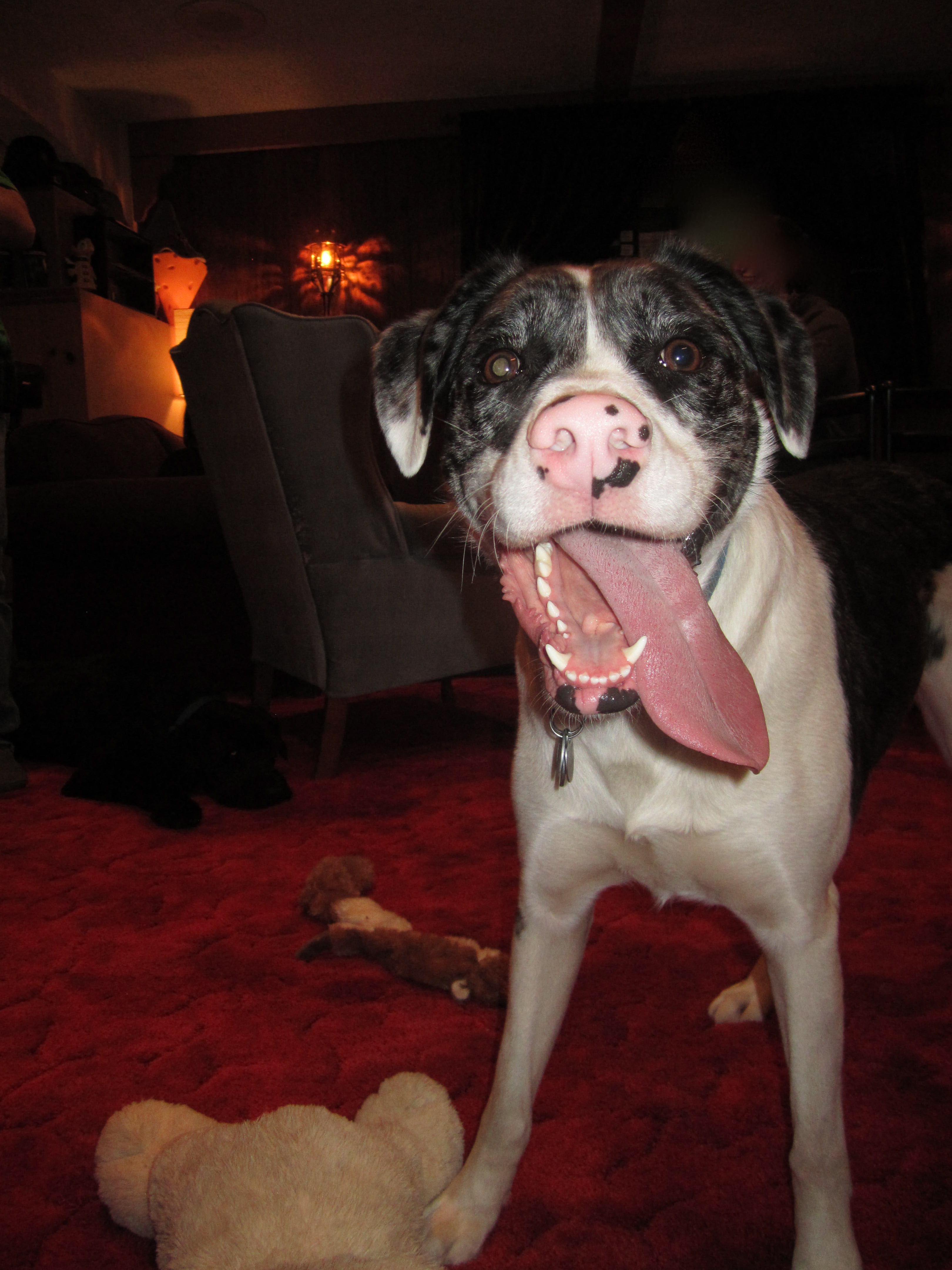 1. I love all of the dog pics. What personalities both dogs have! And I really want that plush red floor!
