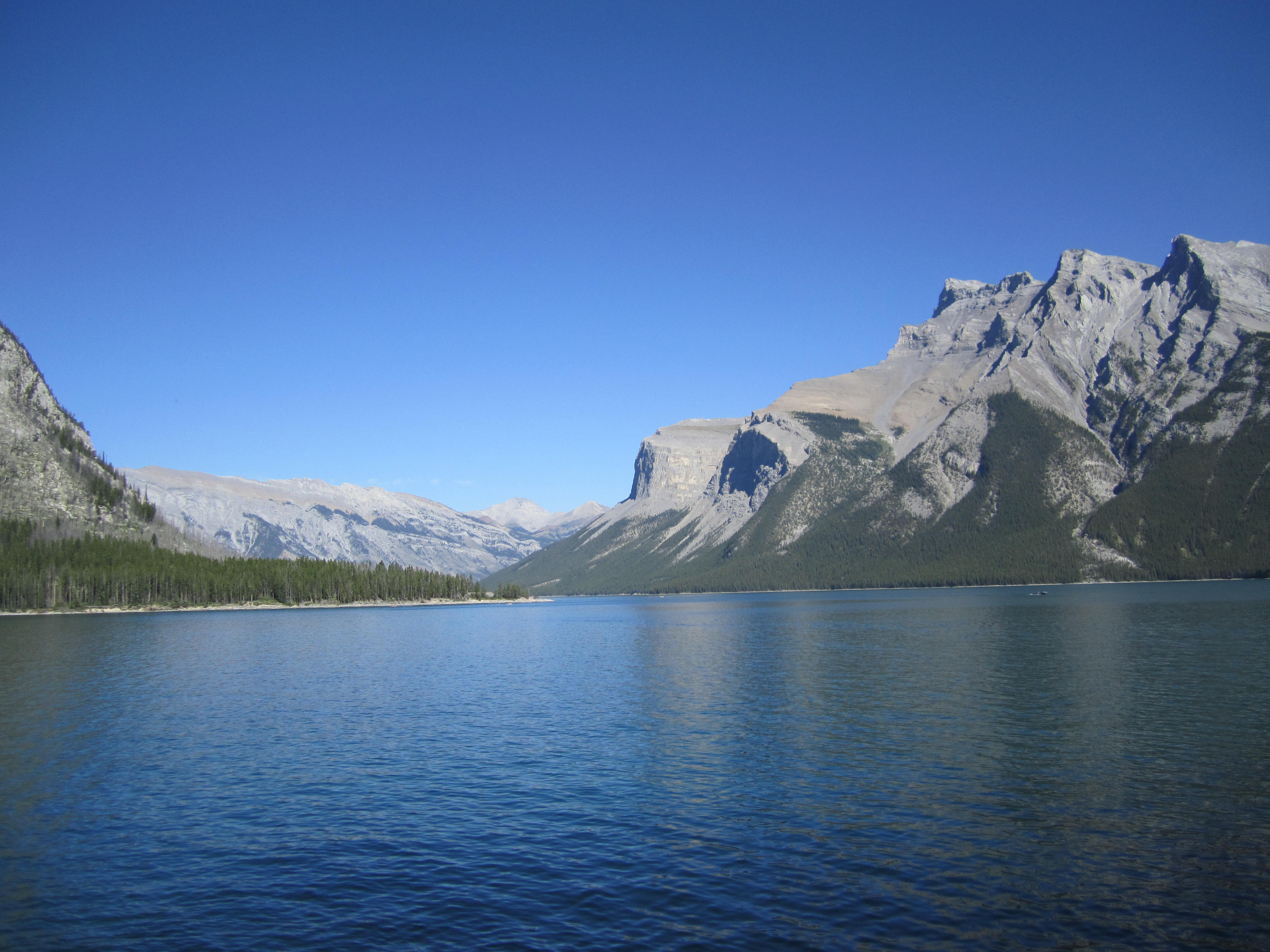 Thankfully, my husband (yippee!) and I were able to spend two days by ourselves in the mountains after the brou-ha-ha died down and our families went home. We spend lots of time on or around the water, taking a boat cruise on Lake Minnewanka, which I didn’t realize until a week ago was my paternal grandmother’s favourite vacation spot, and later canoeing on Lake Louise and Moraine Lake. For those not from around here who were wondering why my sweetie and I did not swim in the lakes we visited, please be advised mountain lakes in Alberta average 4 degrees Celcius: this is about the same temperature as the water in the jug in the door of your fridge.