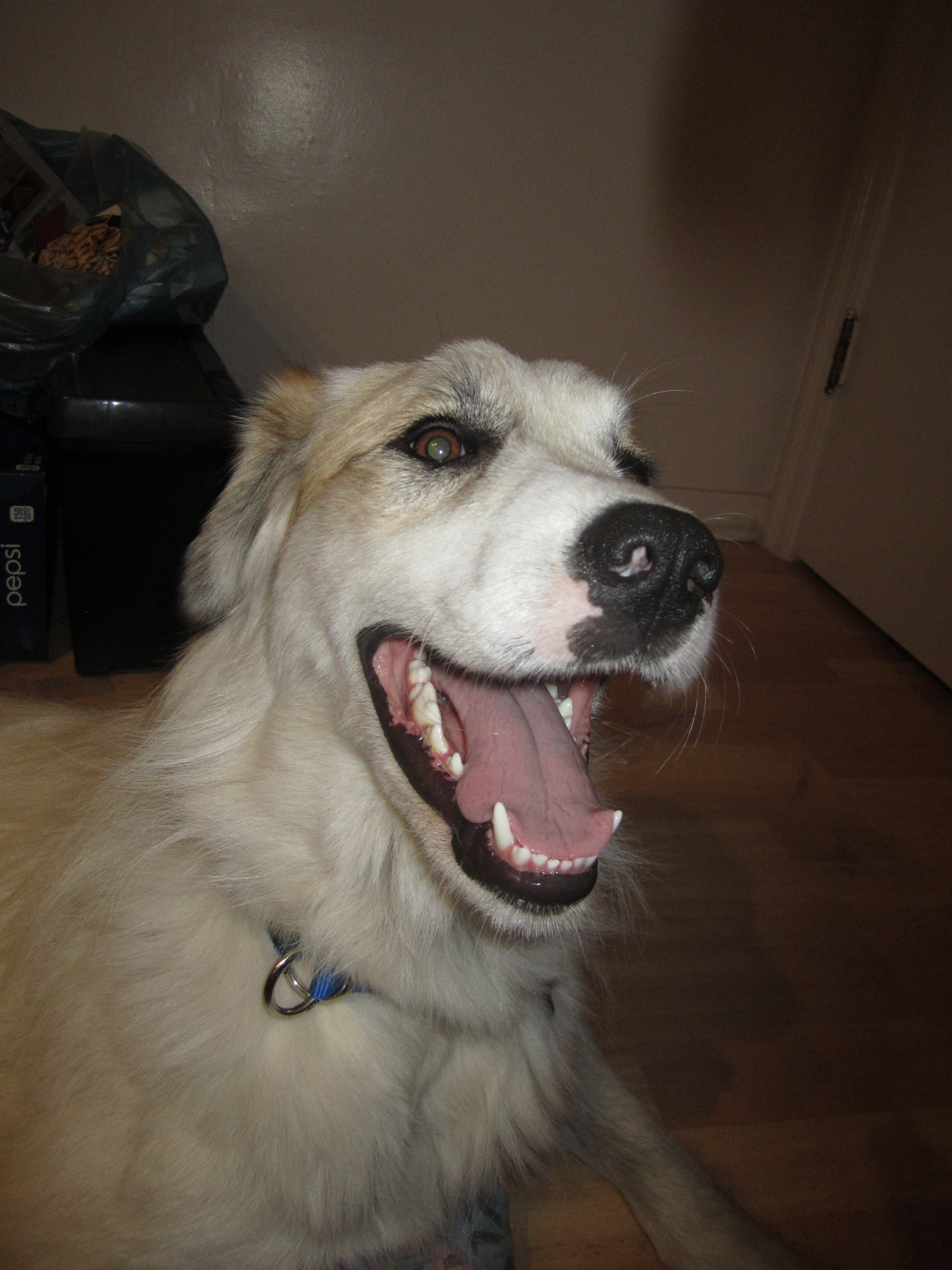 So here we are, up a dog for the time being, and working with a 60 pound critter who had never been inside a house, walked on a leash, or used stairs in her life. It’s like having a new puppy who doesn’t know anything, except this puppy is fully-grown and half Great Pyrenees to boot. Quest is doing her best to behave, and she and Sherman have been playing very nicely. As an added bonus, Sherm is on his best behavior; perhaps he thinks we are auditioning an alternate actor for the role of “dog.” He is responding instantaneously to commands right now, and considering how much he’s been pushing his luck lately, it’s a welcome bonus.